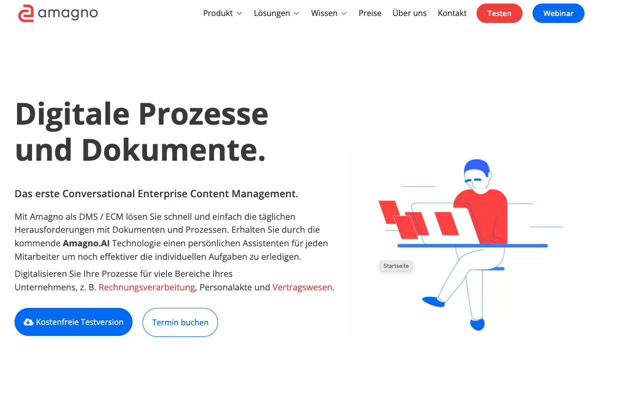 | Amagno | Cloudbasiertes DMS & ECM für den Mittelstand GoBD-konform, All-in-One ohne Modulchaos, intelligente Workflows für Freigaben und Prozesse, KI-Automatisierung mit Amagno.AI (Dokumentenerkennung, Chat & Prozessautomatisierung) |